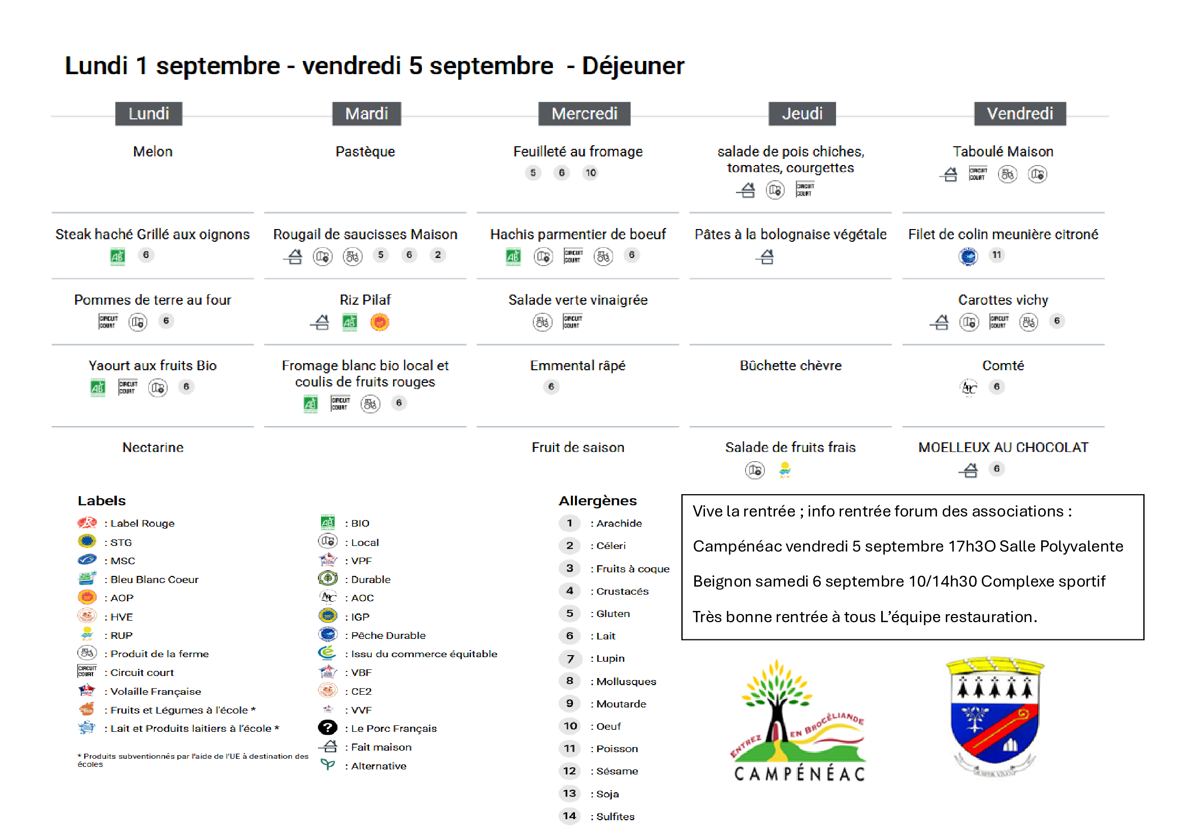 Tarif du repas au 01/09/2022 : 3,60 €