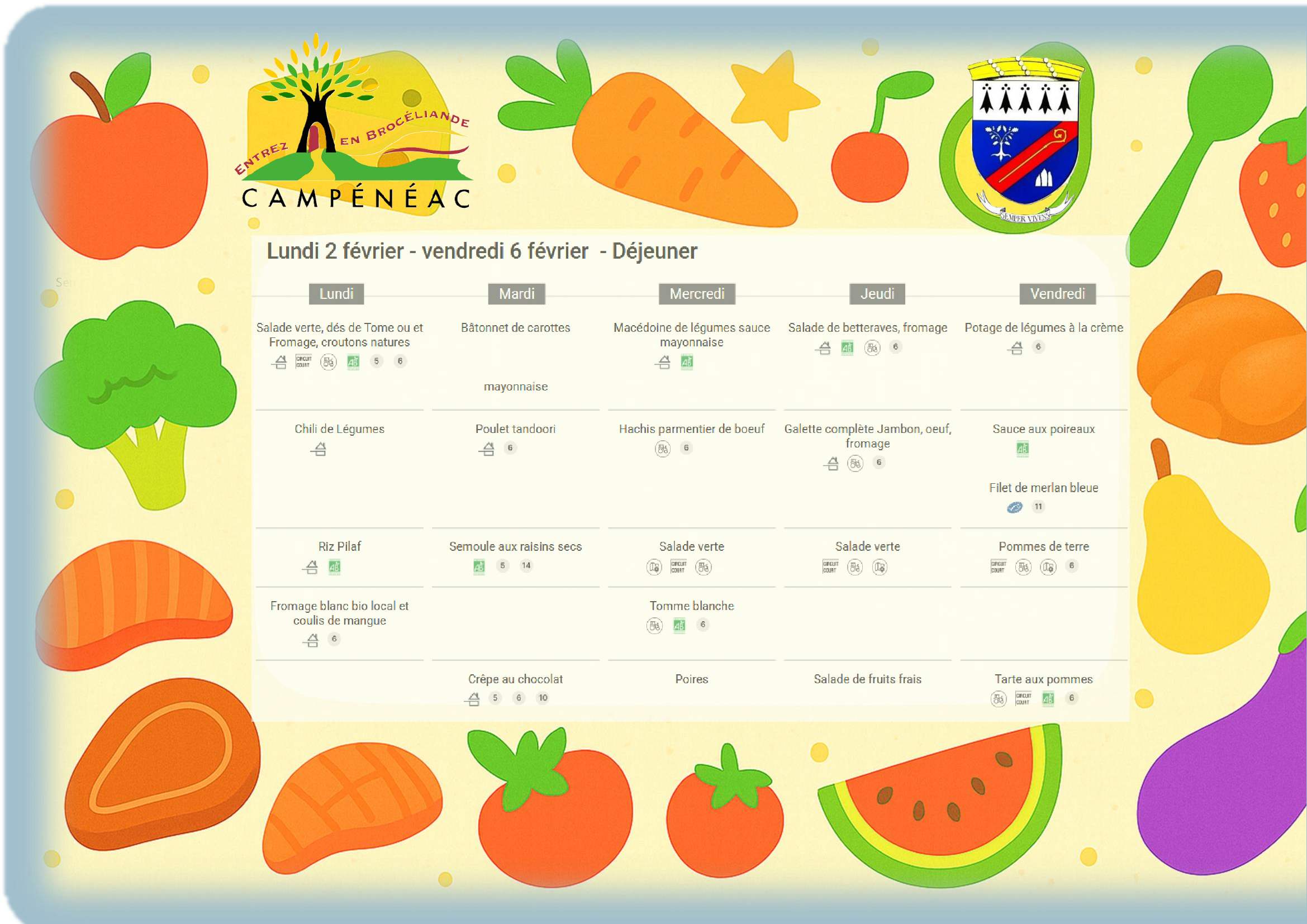 C'est dans la salle polyvalente, que chaque jour, sont servis, environ 160 repas préparés sur place par le personnel communal. Le service et la surveillance des enfants sont assurés par ce même personnel.